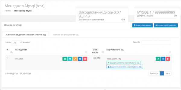 У цьому розділі можна керувати базами даних (MySQL/MariaDB), створювати користувачів БД, проводити експорт/імпорт даних та робити все, що заманеться зі своїми базами.