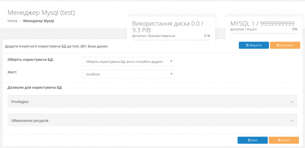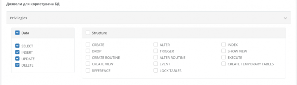 При створенні або додаванні користувача БД обов'язково призначте привілеї: